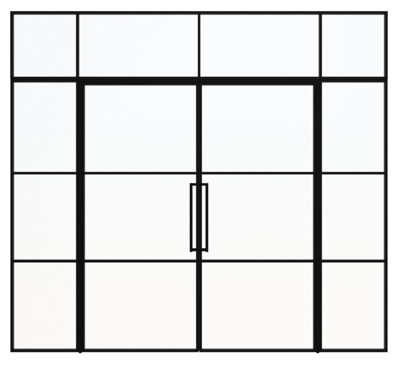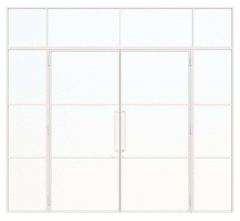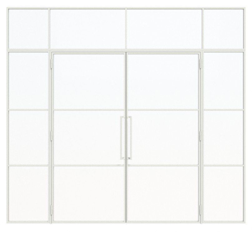 Szerokość i wysokość obu skrzydeł drzwiowych możesz określić w menu konfiguracji. Szerokość elementów bocznych oraz wysokość naświetla dopasowują się do tych wymiarów. Na zapytanie możliwe jest lakierowanie ramy na wybrany kolor RAL, jak również asymetryczny podział obu elementów bocznych lub skrzydeł drzwiowych.