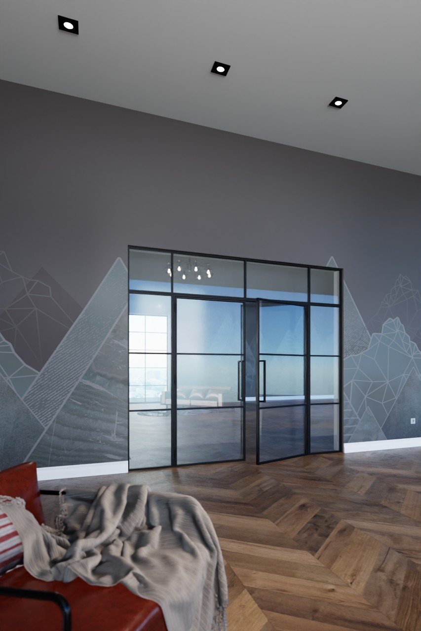 Inteligentne 2-skrzydłowe drzwi loftowe stalowe ze stalową powierzchnią z powłoką proszkową: