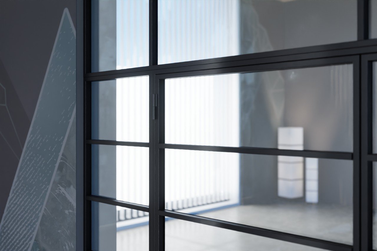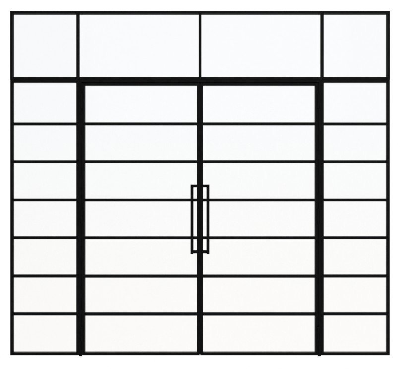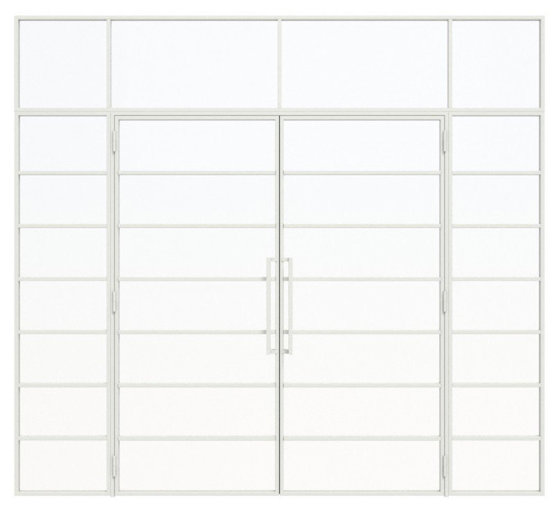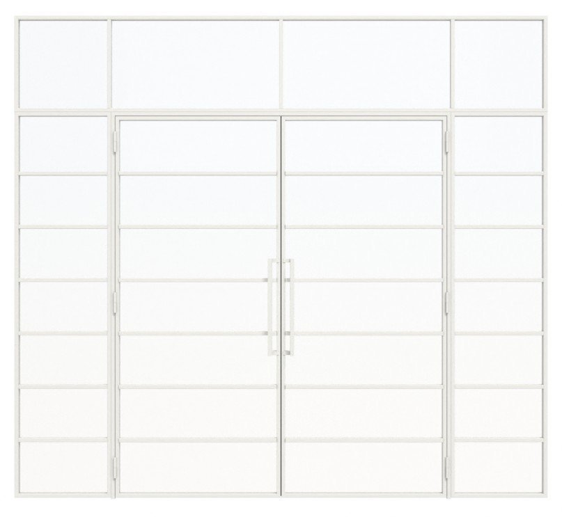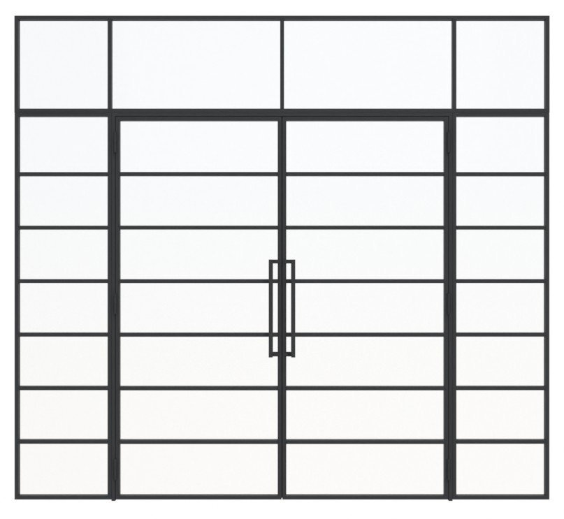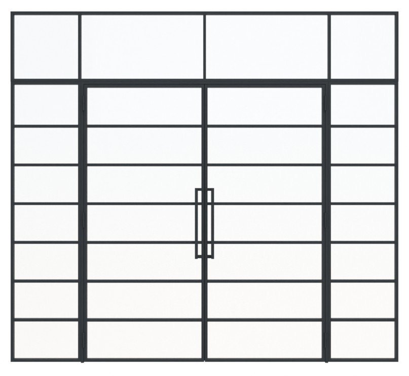 Szerokość stalowych drzwi loftowych dwuskrzydłowych wraz z dwoma elementami bocznymi i stalową powierzchnią z powłoką proszkową: