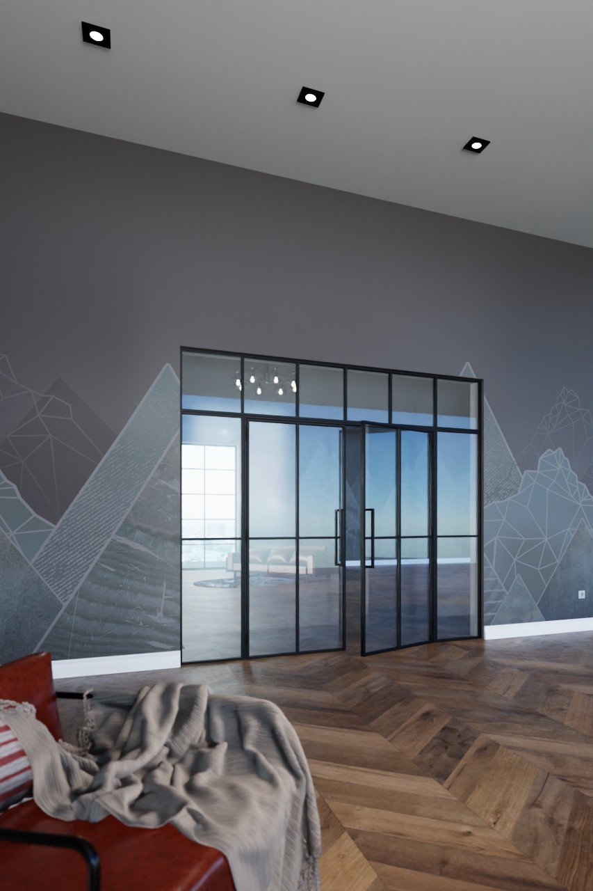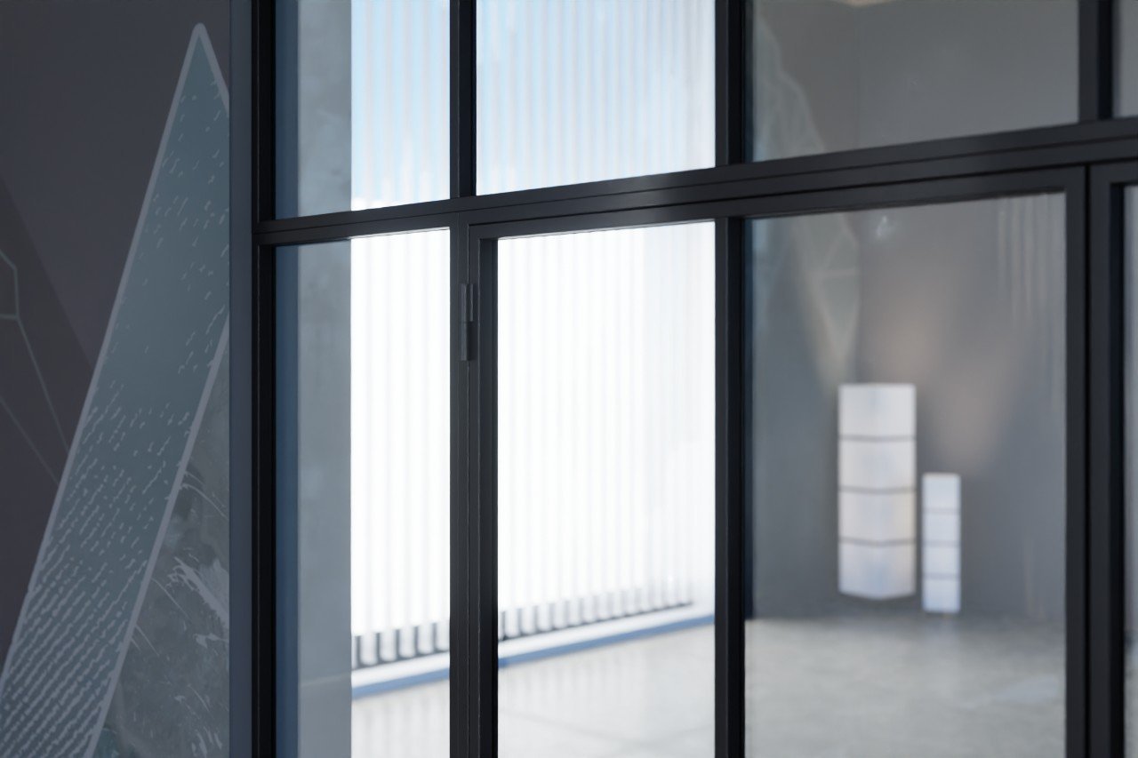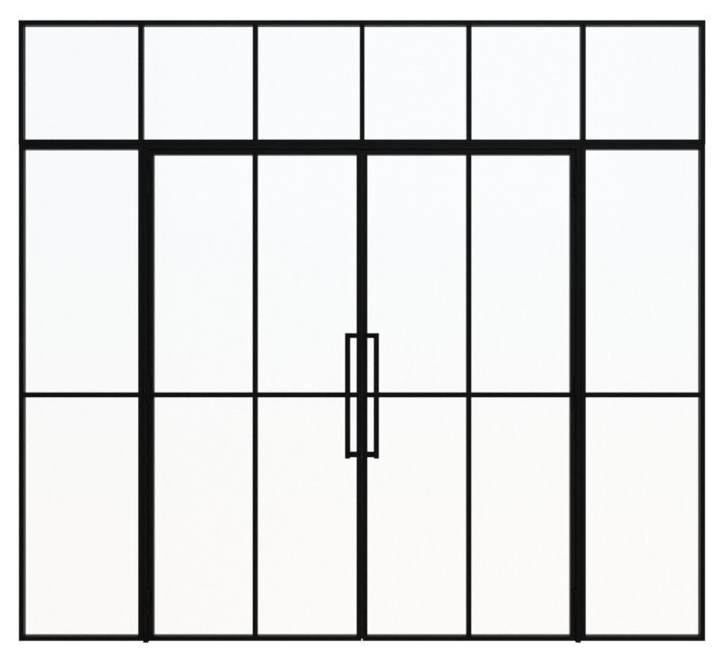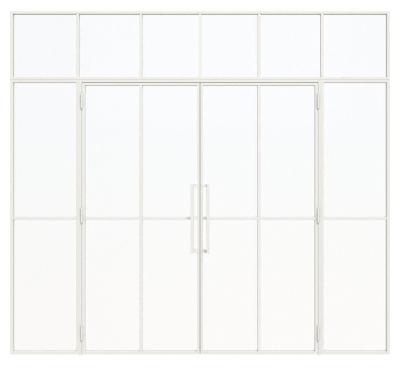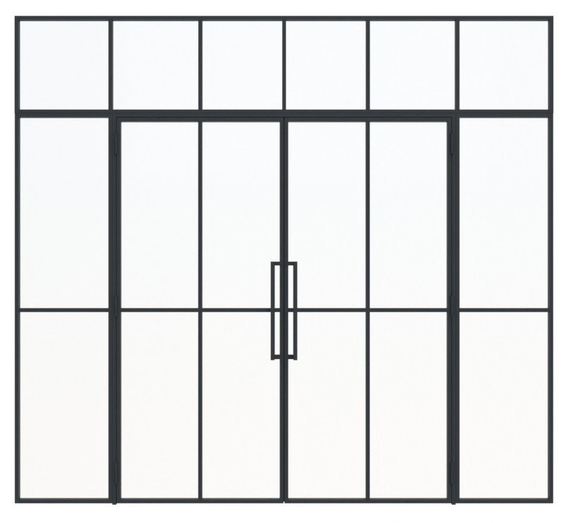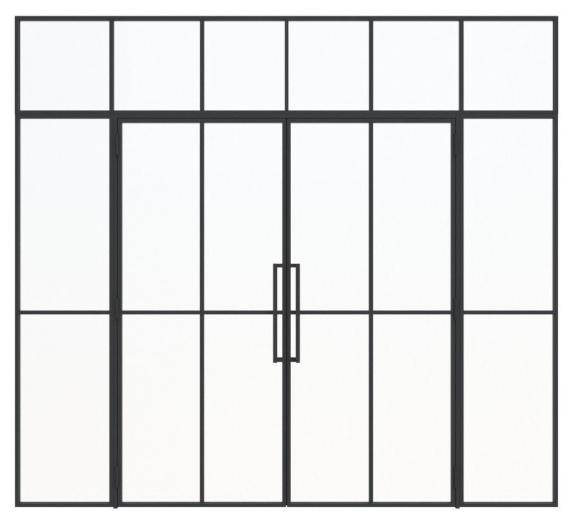 Wyważone stalowe drzwi loftowe dwuskrzydłowe z ramą ze stali walcowanej na zimno i stalową powierzchnią z powłoką proszkową: