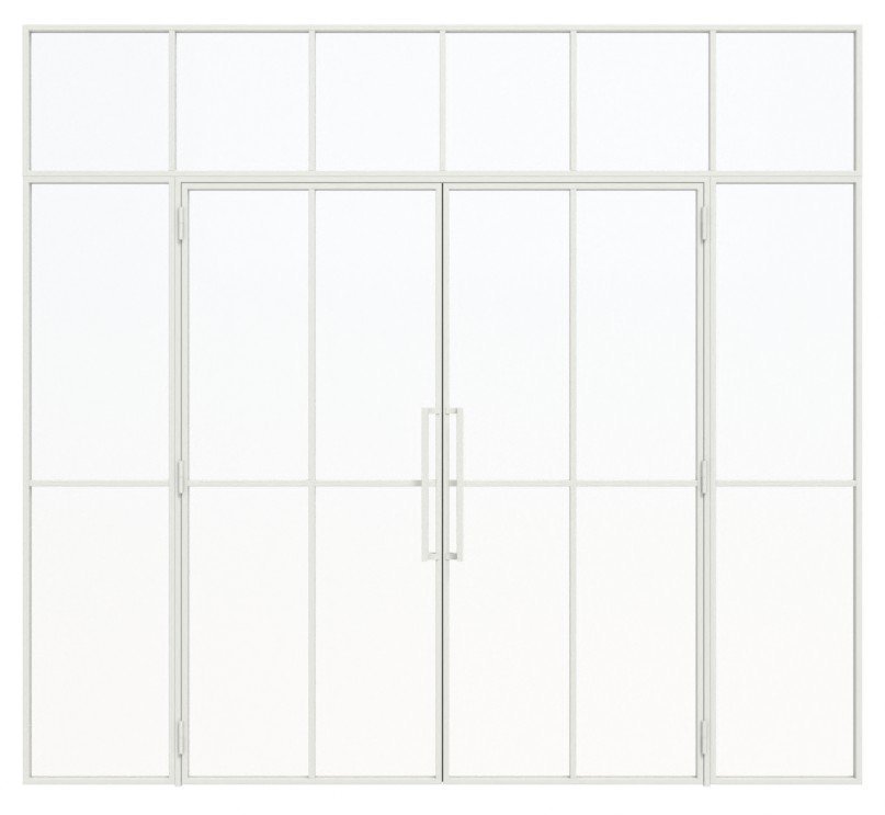 Szerokość i wysokość obu skrzydeł drzwiowych możesz określić w menu konfiguracji. Szerokość elementów bocznych oraz wysokość naświetla dopasowują się do tych wymiarów. Na zapytanie możliwe jest lakierowanie ramy na wybrany kolor RAL, jak również asymetryczny podział obu elementów bocznych lub skrzydeł drzwiowych.