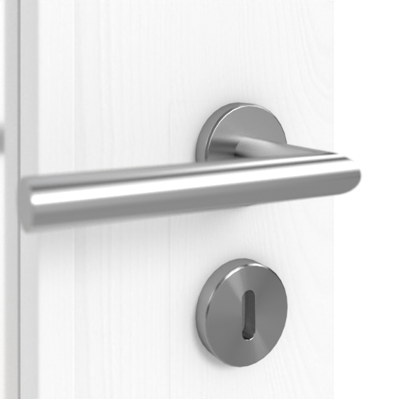 Prostokątne okno z zamontowanymi listwami wprowadza nowoczesną atmosferę. Dzięki swojej pozycji po stronie zamka umożliwia praktyczny, aczkolwiek ograniczony widok na Twój pokój. Dodatkowo, podniesiona lokalizacja chroni dolną część drzwi przed uszkodzeniami szkła.