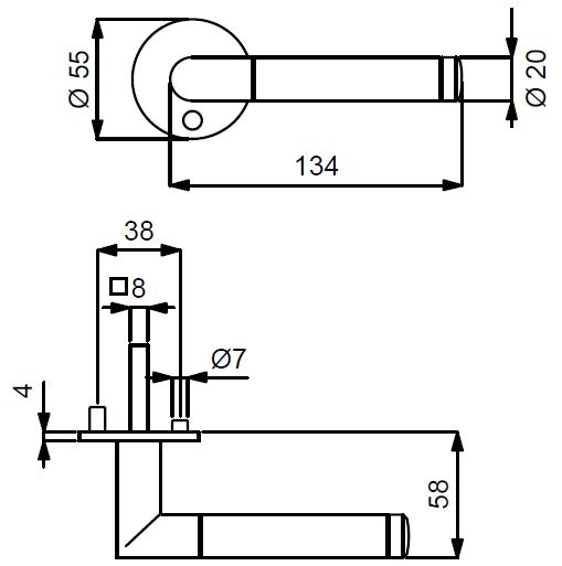 • Kształt klamki: Kształt uchwytu w kształcie litery L