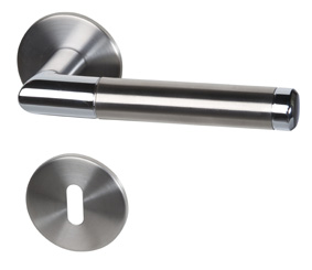 Satynowana powierzchnia uchwytu klamki sprawia, że odciski palców i inne zabrudzenia są prawie niewidoczne. Kontrastuje to z błyszcząco polerowanymi powierzchniami uchwytu. Obie płaskie rozety leżą prawie na równi z powierzchnią drzwi, co nadaje im nowoczesny wygląd. Dzięki technologii Flat są one szybkie, łatwe i oszczędzające materiał w montażu.