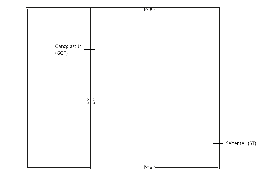 W menu konfiguracji możesz dostosować wysokość i szerokość całoszklanej konstrukcji do swoich potrzeb i warunków. Proszę zawsze podać wymiary surowe. Twoja całoszklana konstrukcja zostanie wykonana z uwzględnieniem wszystkich odliczeń montażowych. Szerokość skrzydła drzwiowego również można ustalić indywidualnie. Pozostała szerokość zostanie symetrycznie podzielona na elementy boczne.