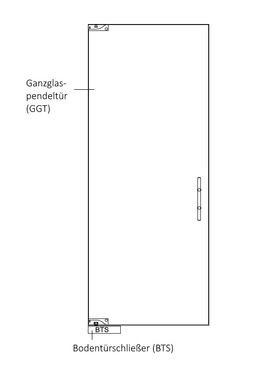 Drzwi zamykają się samodzielnie dzięki zamkowi podłogowemu. Prędkość zamykania można dostosować indywidualnie. Możliwe jest również stałe otwarcie drzwi pod kątem 90°. Zamek podłogowy montowany jest wcześniej poprzez ciśnieniowy montaż w podłodze.
