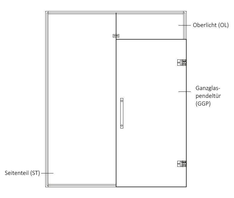System szklany można konfigurować w różnych wysokościach i szerokościach. Podział wymiarów surowych na poszczególne elementy różni się w zależności od całkowego rozmiaru. Dokładną dystrybucję wymiarów można znaleźć w poniższej tabeli.