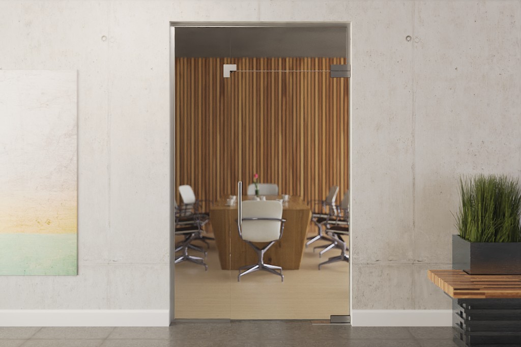 Elegancki element przestrzenny ze szkła: Dla tych, którzy stawiają na niezawodną funkcjonalność i nowoczesny wygląd, całoszklana konstrukcja Dorma Mundus BTS od Erkelenz jest idealnym wyborem. Stylowo łączą się tutaj drzwi wahadłowe, część boczna i świetlik.