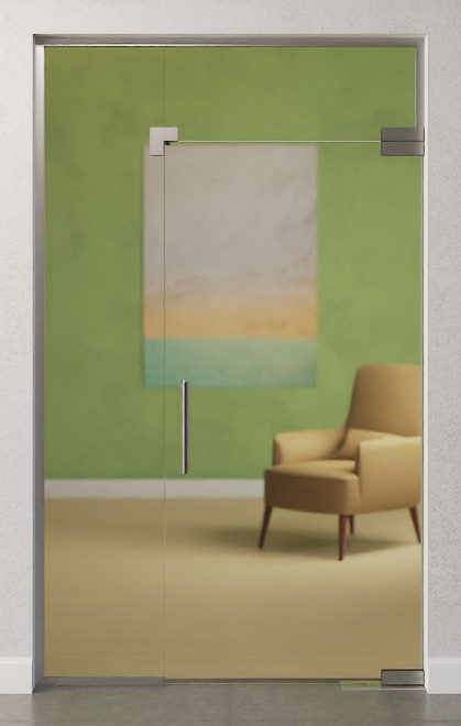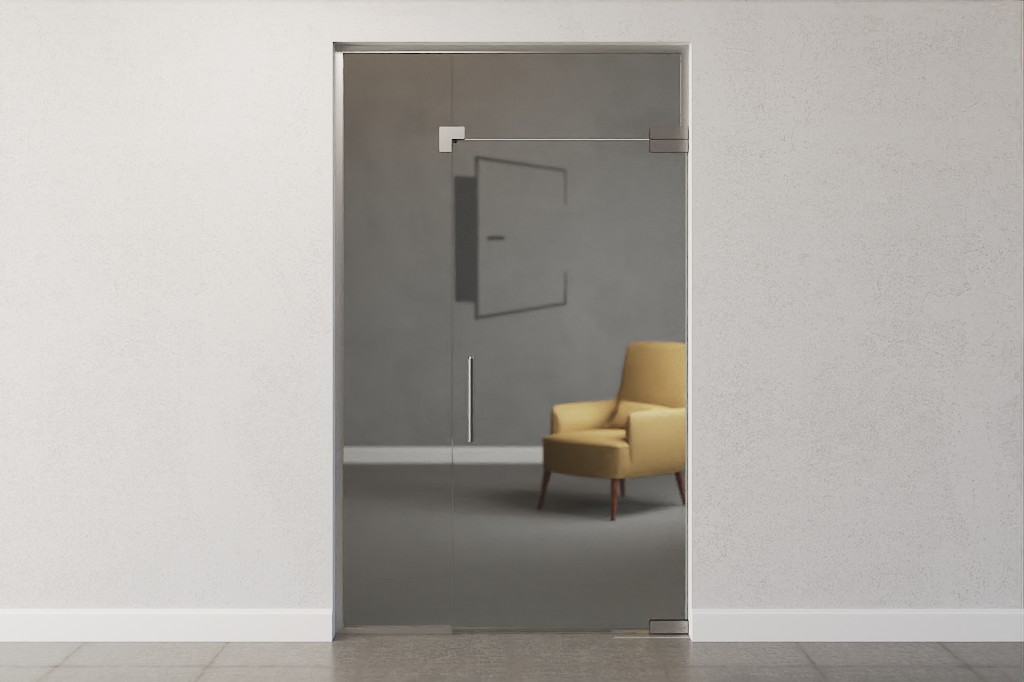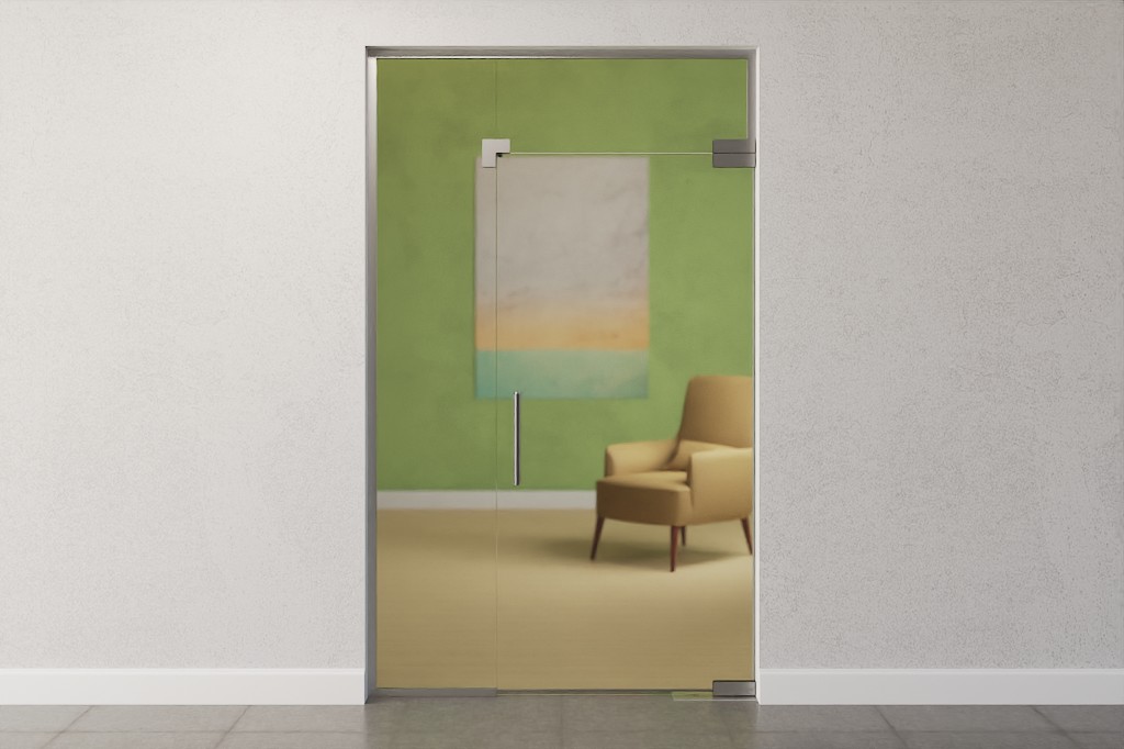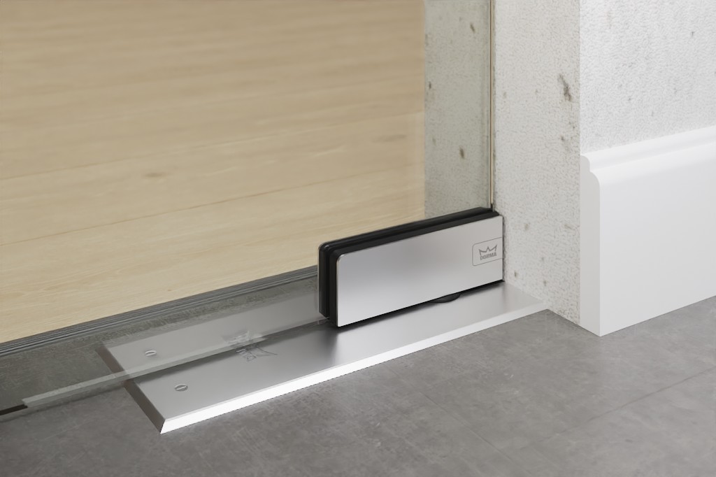 Najwyższej jakości zawiasy do drzwi wahadłowych umożliwiają otwieranie w obu kierunkach. Następnie drzwi delikatnie wracają do swojej pozycji spoczynkowej. Prędkość zamykania można indywidualnie dostosować w podłogowym zamku drzwiowym. Możliwe jest stałe otwarcie pod kątem 90°. Ważny jest solidny montaż zamka drzwiowego w podłodze.