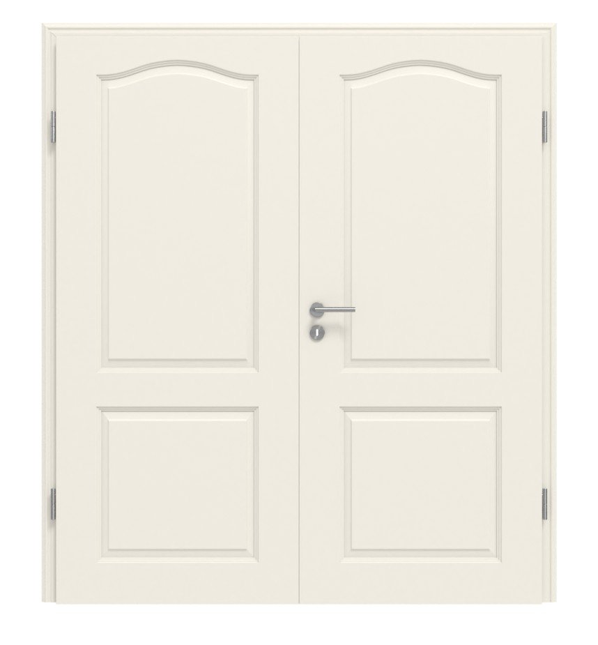 Elegancki wygląd powierzchni powstaje dzięki wysokiej jakości białemu lakierowi, który jest nakładany w kilku warstwach na obie strony drzwi. Jednolity i klarowny obraz powstaje dzięki formowanej okładzinie podwójnych drzwi. Szczególną atrakcję stanowią przyjemne wzory wypełnienia oraz eleganckie łuki na górnych końcach skrzydeł.