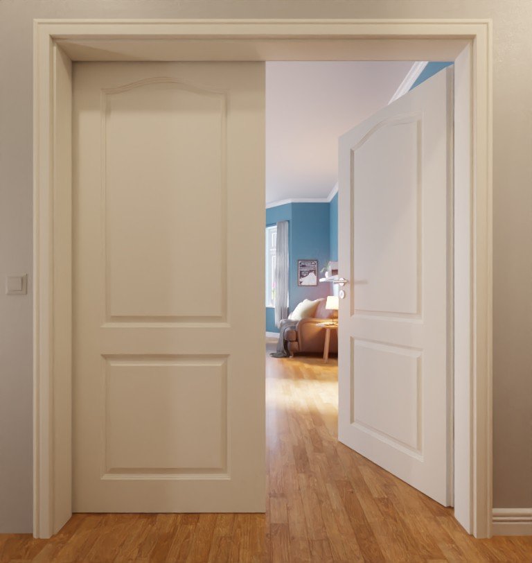 Rdzeń drzwi wykonany jest z płyty wiórowej, co zapewnia solidną stabilność i ekskluzywną jakość. Drzwi podwójne wprowadzają do każdego domu szczególnie przestronną atmosferę i oferują przewagę miejsca w porównaniu do tradycyjnych drzwi wewnętrznych.