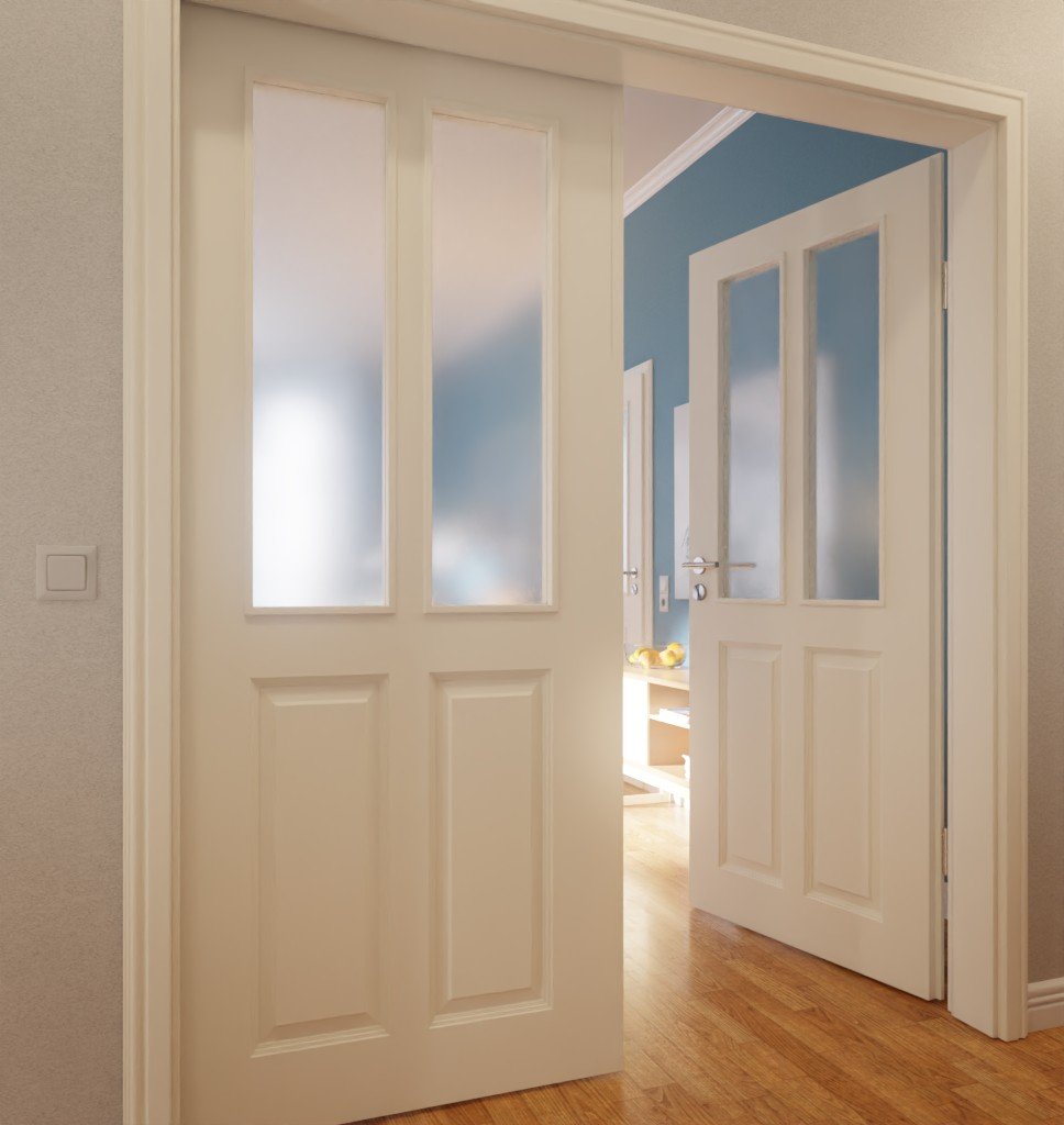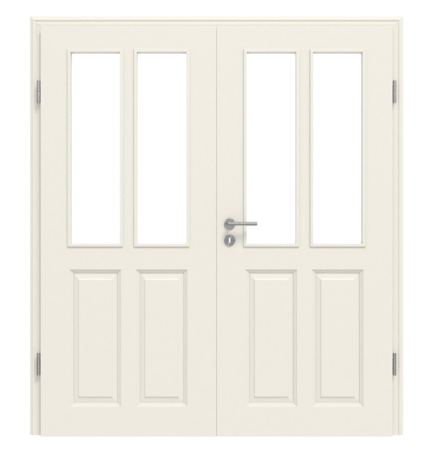 Proszę zwrócić uwagę: Przy szerokości skrzydła 610 mm zmienia się design drzwi podwójnych. W tym wymiarze model jest wykonany z wypełnieniem szklanym i optyką wypełnienia, podobnie jak Formelle Weißlack M20-LA