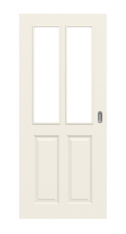 Skrzydło drzwiowe jest podzielone przez dwa przeszklenia i dwa wzory kasetowe. Dzięki wielowarstwowym lakierowaniom w skomplikowanym procesie powstaje szczególnie odporna i intensywnie kolorowa powierzchnia.