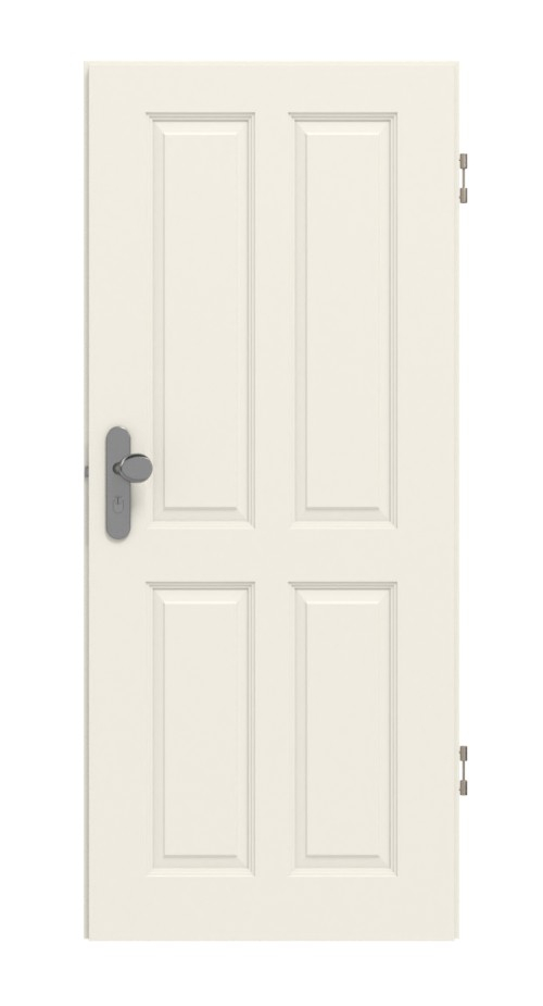 Drzwi białe do mieszkania z kreatywnej pracowni niemieckiego producenta drzwi średniej wielkości Lebo charakteryzują się lakierowaną powierzchnią. Formowana pokrywa przypomina urok drzwi wiejskich. Wygląd wypełnienia w postaci czterech eleganckich prostokątów podkreśla klasyczny design. Krawędź drzwi jest zaokrąglona. Zgodnie z Państwa życzeniami model można pomalować w białych odcieniach lakieru RAL 9010 lub RAL 9016.