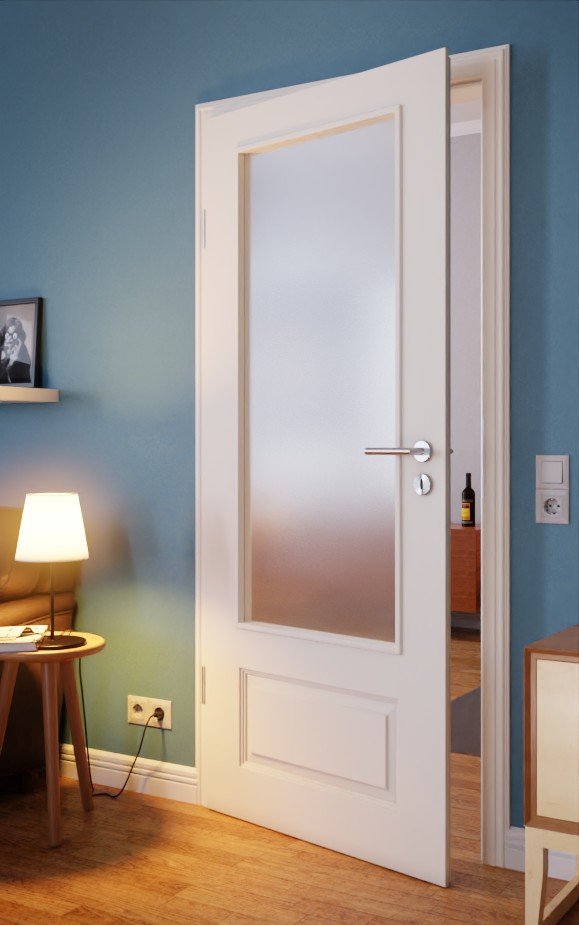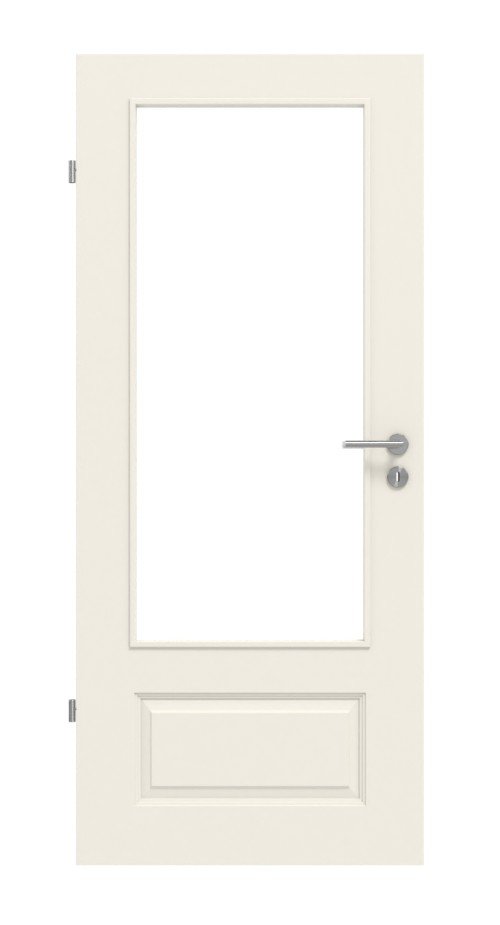 Szlachetny wygląd w bieli uzyskuje skrzydło drzwi dzięki wielowarstwowej białej lakierze. Jak wszystkie modele w serii, te drzwi wewnętrzne są produkowane z zaokrąglonymi krawędziami. Urokliwy wygląd tworzy formowana okładzina.