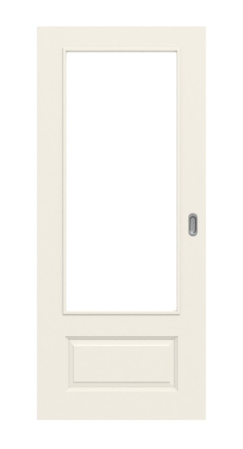 Duży otwór świetlny tworzy akcenty. W strefie podłogowej skrzydło drzwiowe jest chronione wąskim wyglądem kasetowym. Dzięki wielowarstwowym lakierowaniom w skomplikowanym procesie powstaje szczególnie odporna i intensywnie kolorowa powierzchnia.