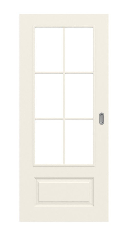 Duży otwór świetlny tworzy akcenty. Ramka z przegrodami dodatkowo dzieli powierzchnię. W strefie podłogi skrzydło drzwiowe jest chronione wąskim wyglądem kasetowym. Dzięki wielowarstwowym lakierowaniom w skomplikowanym procesie powstaje szczególnie odporna i intensywnie kolorowa powierzchnia.