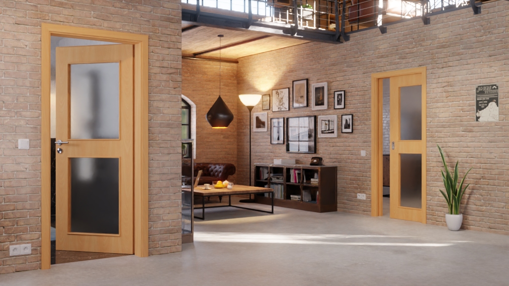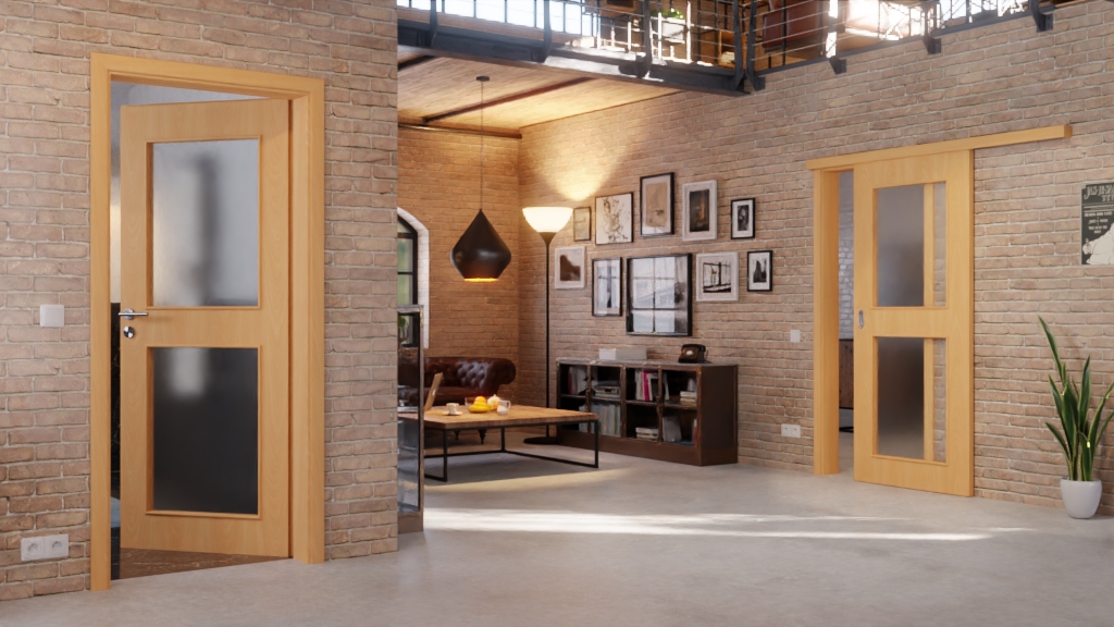 Oba równej wielkości otwory świetlne są umieszczone centralnie i stanowią atrakcję wizualną skrzydła drzwi. Wpuszczają dużo światła do pomieszczenia, tworząc pozytywną atmosferę.