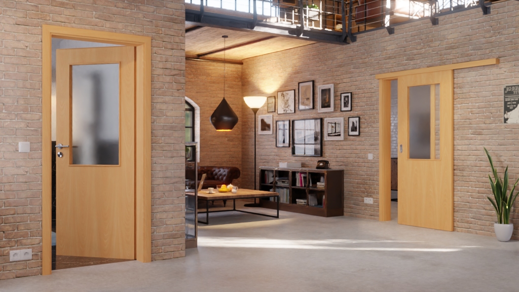 W górnej części skrzydła drzwi znajduje się szeroki przeszklony fragment. Pozwala on na wpuszczenie dużej ilości światła do pomieszczenia, tworząc w ten sposób pozytywną atmosferę.