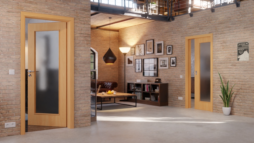 Przeszklenie obejmuje niemal całe skrzydło drzwi. Dzięki temu zapewnia intensywne doświetlenie i w ten sposób tworzy przestrzeń pełną światła.