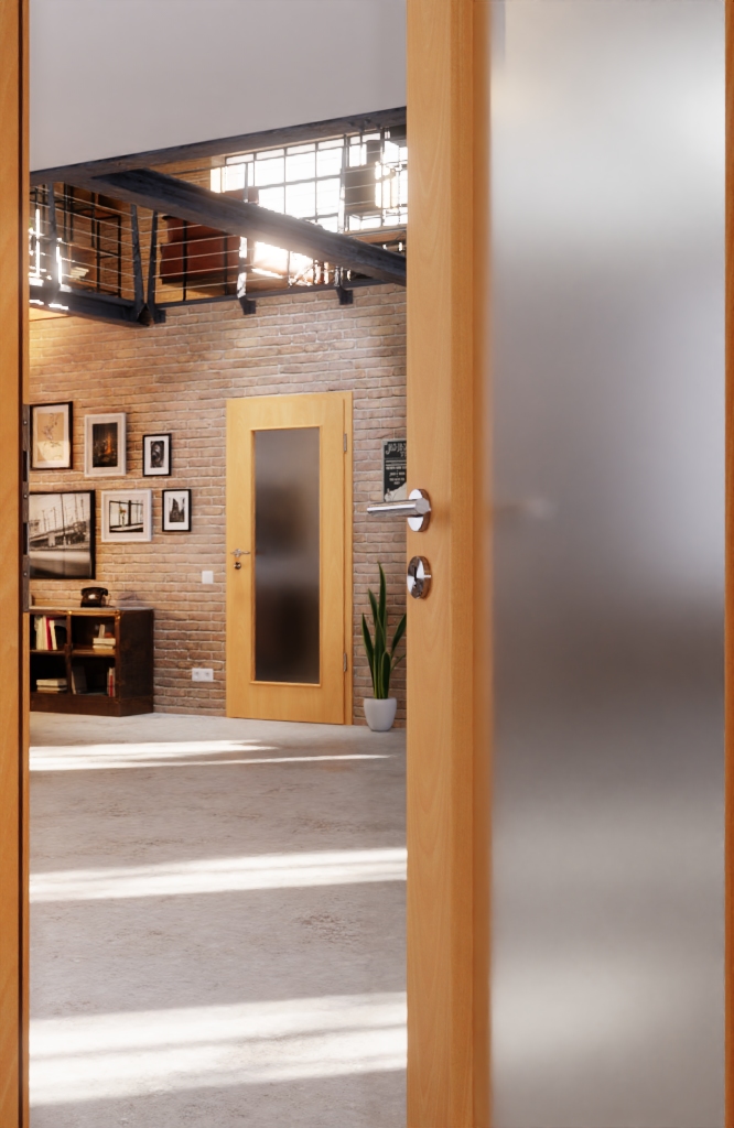 Przeszklenie rozciąga się niemal na całej powierzchni skrzydła drzwiowego. Dzięki temu zapewnia intensywne doświetlenie i w ten sposób tworzy przestrzeń pełną światła.
