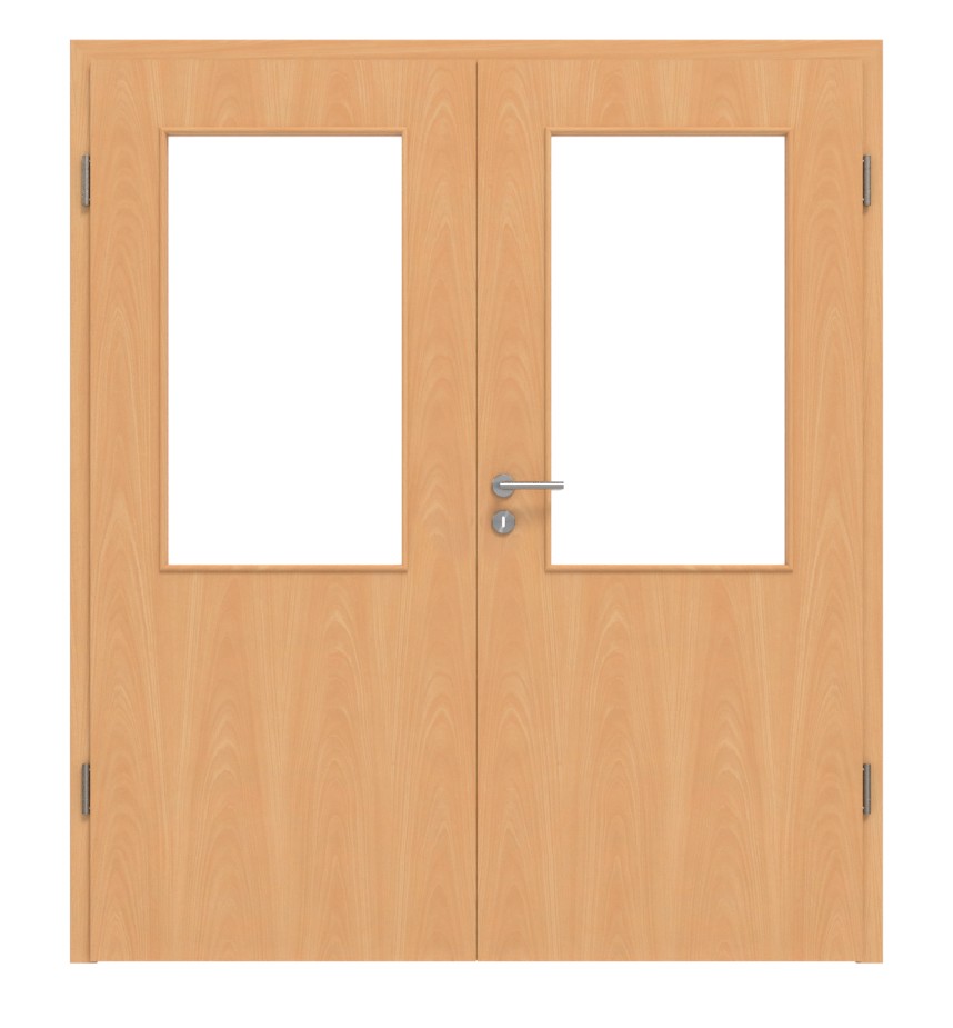 Trwałe drzwi podwójne ProLine w kolorze buk francuski z trzema zawiasami i pełną płytą jako rdzeń drzwi: