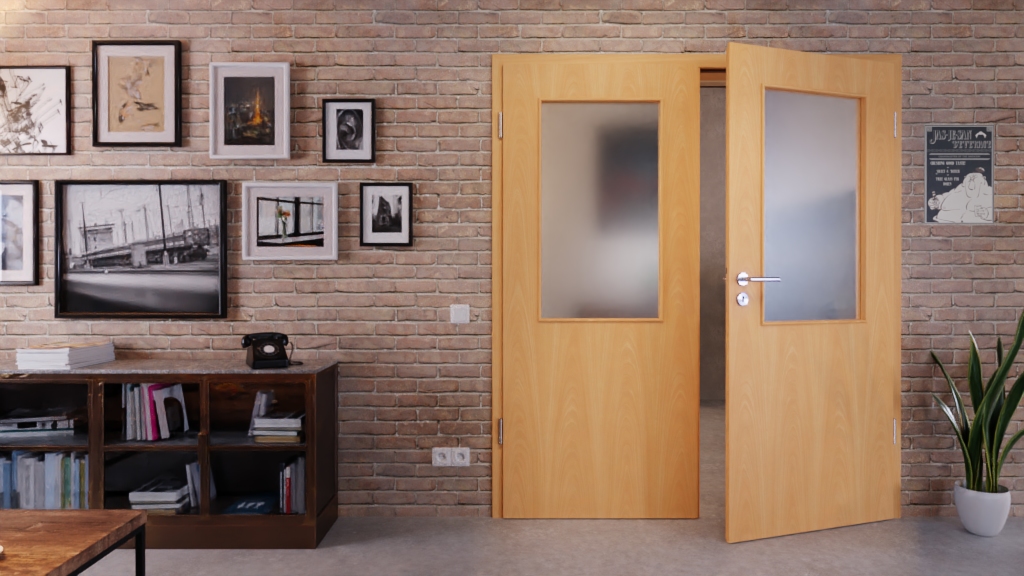 W górnej części skrzydła drzwi znajduje się szeroki przeszklony fragment. Pozwala on na wpuszczenie dużej ilości światła do pomieszczenia, tworząc w ten sposób pozytywną atmosferę.