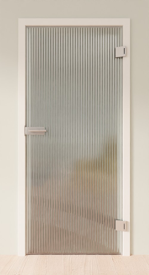 Wertykalne paski charakteryzują szkło ornamentowe. Struktura przypomina ścianki działowe i gustownie wkomponowuje się w Twoją architekturę. Przez przezroczyste szkło wpada dużo światła.