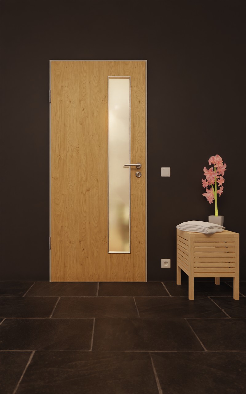 Drzwi zyskują nowoczesny charakter dzięki długiemu, wąskiemu przeszkleniu po stronie zamka. Charakterystyczne słoje drewna nadają dekorowi Authentic Asteiche naturalny wygląd. Wytrzymała i odporna na światło warstwa wierzchnia HPL jest odporna na zarysowania i ścieranie i została zaprojektowana z myślą o codziennym intensywnym użytkowaniu.