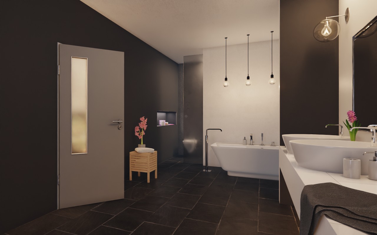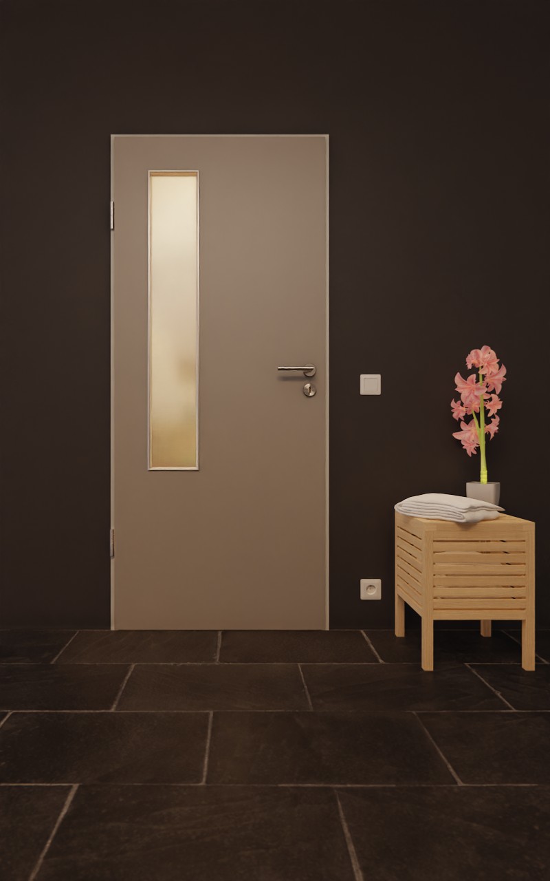 Ponadczasowe drzwi funkcjonalne zachwycają trwałym dekorem HPL oraz odpornością na chwilowo wysoką wilgotność powietrza: