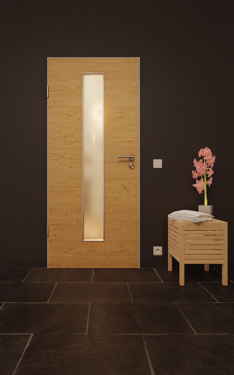 Drzwi do pomieszczeń wilgotnych są odporne na sporadyczne zachlapania wodą i krótkotrwałe spływanie skroplin. Ponadto jest odporna na wahania temperatury i wysoką wilgotność powietrza przez krótki czas. Wystarczającą stabilność zapewnia pełna wkładka z płyty wiórowej w rdzeniu skrzydła drzwiowego. Dzięki klasyfikacji do klasy obciążenia M drzwi do pomieszczeń wilgotnych doskonale nadają się do użytku prywatnego.