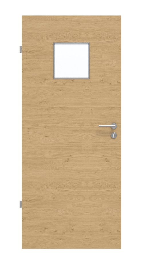 Sercem nowoczesnego projektu drzwi jest kwadratowy otwór na światło o szerokości 30 cm. Poprzeczne słoje z pojedynczymi śladami po sękach nadają pięknej dekoracji Authentic Asteiche naturalny wygląd drewna. Wytrzymała płyta laminowana HPL jest odporna na zarysowania, uderzenia i ścieranie oraz łatwa w czyszczeniu.