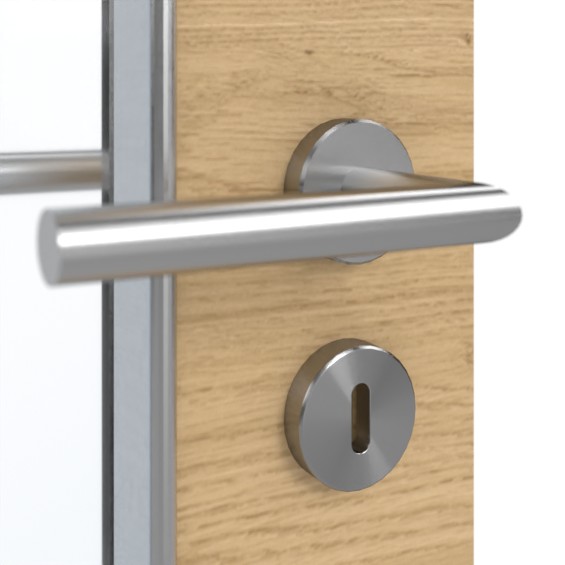 Po stronie zamka w skrzydle drzwiowym znajduje się wąskie, prostokątne wycięcie na szybę. Wzorowany na prawdziwym drewnie, wzór poprzeczny Authentic Asteiche charakteryzuje się żywą fakturą. Wytrzymały dekor HPL jest odporny na działanie światła, zarysowania, uderzenia i ścieranie i można go łatwo czyścić za pomocą dostępnych w handlu środków czyszczących.