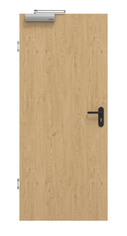 Ta zaawansowana technicznie konstrukcja posiada w pomieszczeniu wewnętrznym ramę z litego drewna wraz ze stabilizatorem i płytą wiórową pełną, a całość otacza płyta HDF o grubości 3 mm. Zgodnie z normą DIN 18095 model jest uzupełniony o samozamykacz drzwiowy górny oraz opuszczaną uszczelkę podłogową.