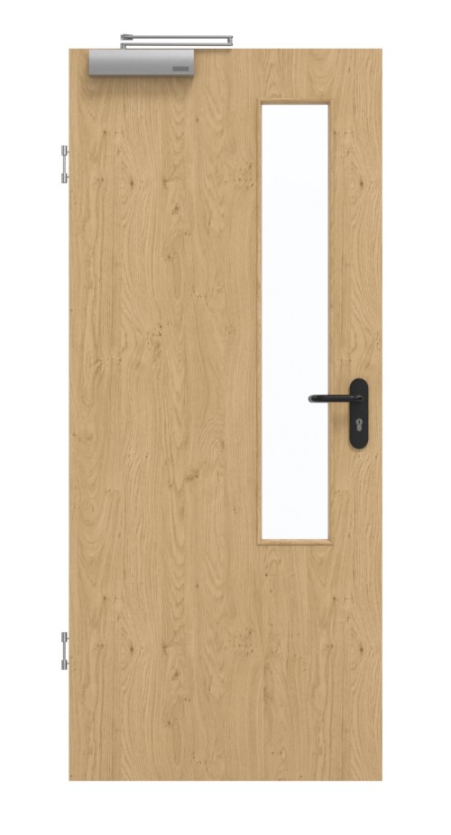 Konstrukcja składa się z płyty wiórowej pełnej i ramy z litego drewna wraz ze stabilizatorem. Płyta wierzchnia HDF o grubości 3 mm zaokrąglona dopełnia wnętrze drzwi. Zgodnie z normą DIN 18095 drzwi zamykają się samoczynnie dzięki samozamykaczowi drzwiowemu górnemu i są uszczelnione od strony podłogi za pomocą standardowej izolacji akustycznej Schallex.
