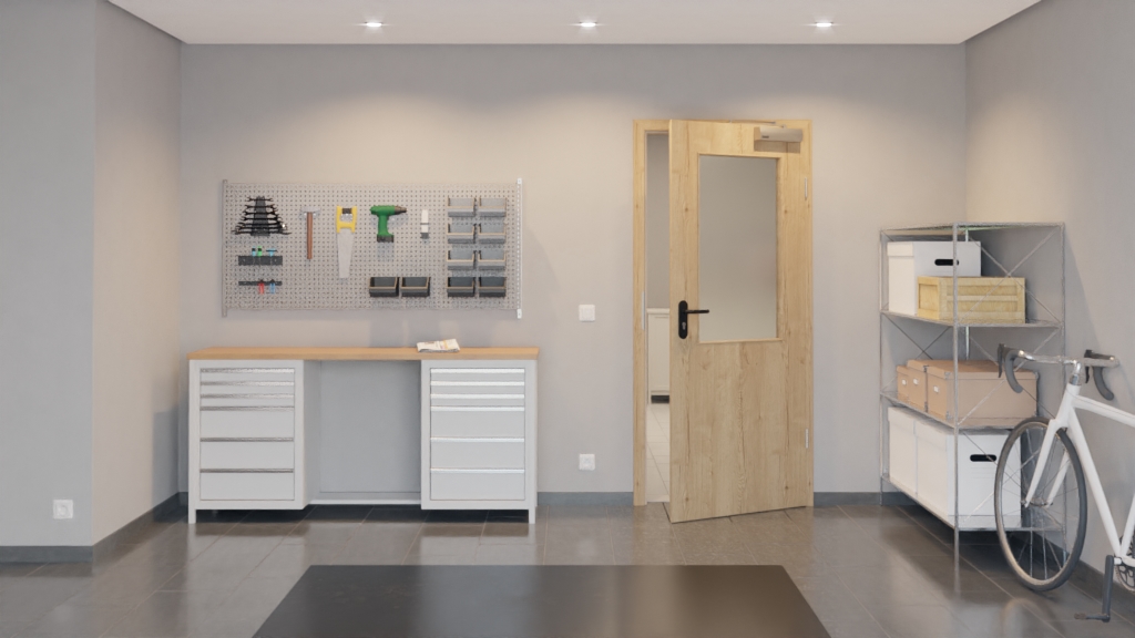 Robustne drzwi CPL z mechanizmem zamykającym i uszczelką podłogową przeciw dymowi: