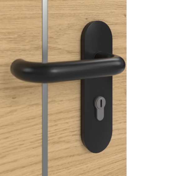 • Zakres dostawy: Skrzydło drzwiowe, zawiasy, zamek cylindryczny, samozamykacz, obniżana uszczelka podłogowa, czarny plastikowy uchwyt