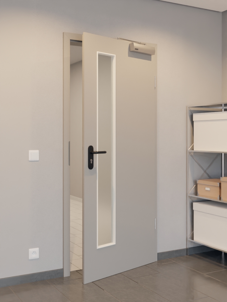 Normatywne drzwi funkcjonalne od Garant z pełną płytą i 3-częściowymi zawiasami dla zapewnienia skutecznej ochrony przed dymem: