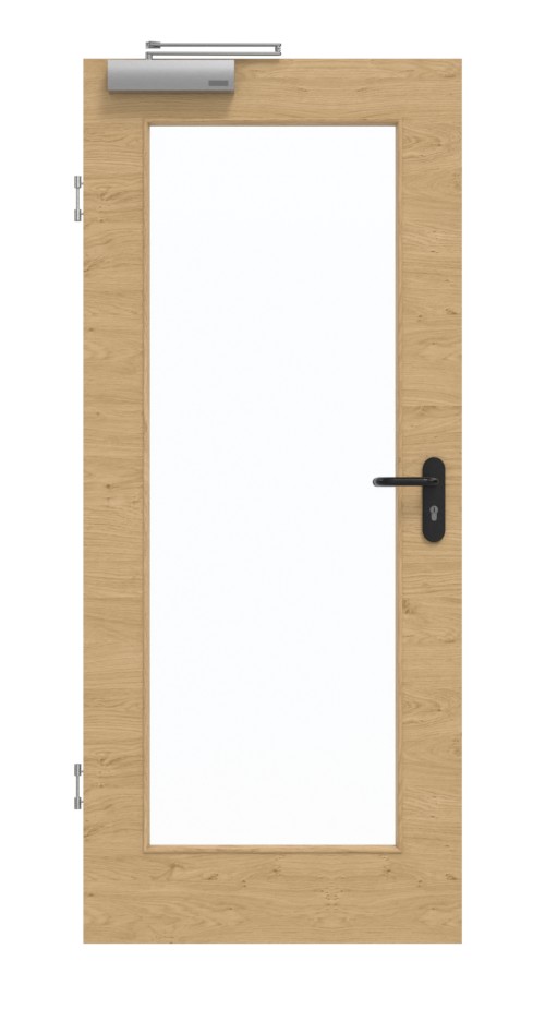 Konstrukcja składa się z ramy z litego drewna ze stabilizatorem, płyty wiórowej pełnej oraz płyty HDF o grubości 3 mm i wysokiej gęstości jako warstwy wierzchniej. Zgodnie z normą DIN 18095 dotyczącą drzwi dymoszczelnych drzwi są wyposażone w samozamykacz drzwiowy górny i opuszczaną uszczelkę podłogową.