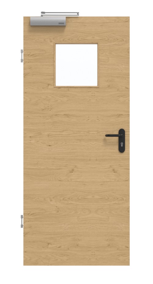 Model jest zbudowany z solidnej ramy z drewna litego ze stabilizatorem i solidnej płyty wiórowej pełnej. Warstwa wierzchnia składa się z płyty HDF o grubości 3 mm. Zgodnie z normą DIN 18095 dotyczącą drzwi dymoszczelnych drzwi są wyposażone w samozamykacz drzwiowy górny i opuszczaną uszczelkę podłogową.