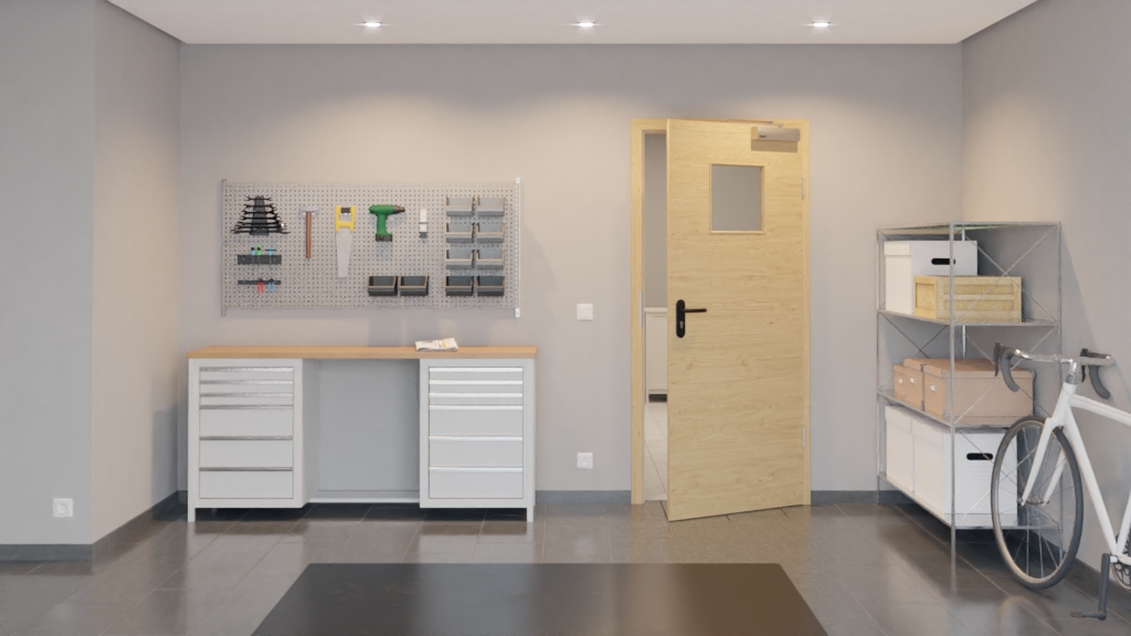 W standardowym wyposażeniu znajduje się skrzydło drzwiowe, klamka z tworzywa sztucznego, zamek PZ, dwa trzyczęściowe zawiasy, samozamykacz nożycowy do drzwi górnych oraz opuszczana uszczelka podłogowa.