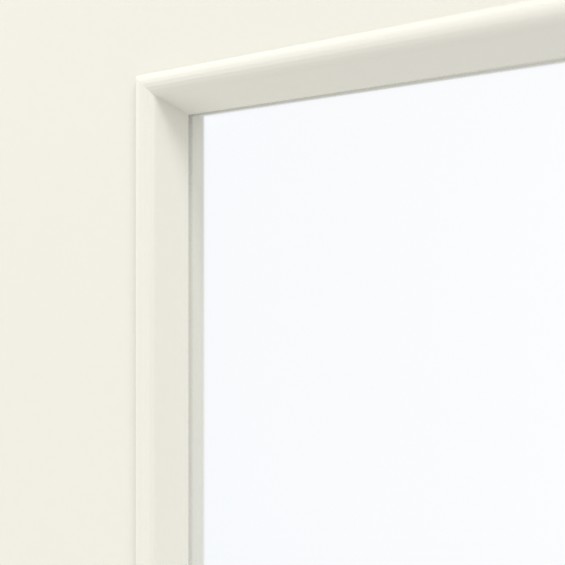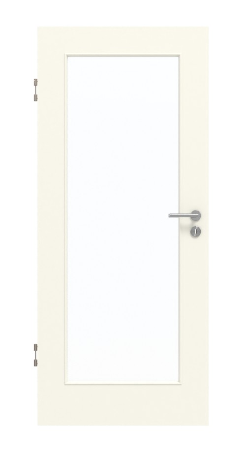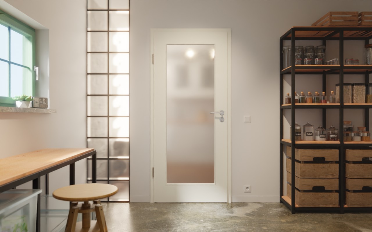 W środkowej części skrzydła drzwiowego znajduje się duże, prostokątne wycięcie na szybę. Jednolity dekor Snow White urzeka neutralnym wyglądem i drobną strukturą przypominającą piasek. Piękny design powłoki CPL pozostaje niezmieniony przez długi czas, ponieważ jest ona odporna na zarysowania i promieniowanie UV.