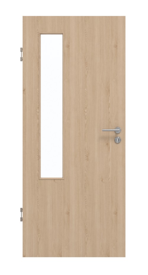 Po stronie zawiasów skrzydła drzwiowego znajduje się prostokątne przeszklenie. Charakterystyczne słoje drewna i jasne odcienie beżowe nadają wyważonemu dekorowi Authentic Achatniepowtarzalny charakter. Materiał CPL przekonuje swoją odpornością na wilgoć i odpornością na UV.