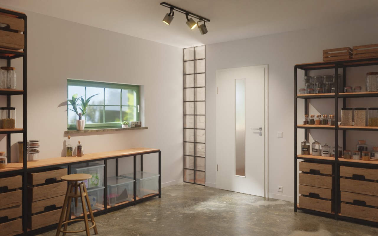 Nowoczesny akcent nadaje wycięcie na szybę w środkowej części skrzydła drzwiowego o szerokości prawie 20 cm. W świeżym białym wzorze Authentic Bianco widoczne są delikatne słoje przypominające drewno. Łatwy w pielęgnacji materiał CPL jest odporny na wilgoć i promieniowanie UV.