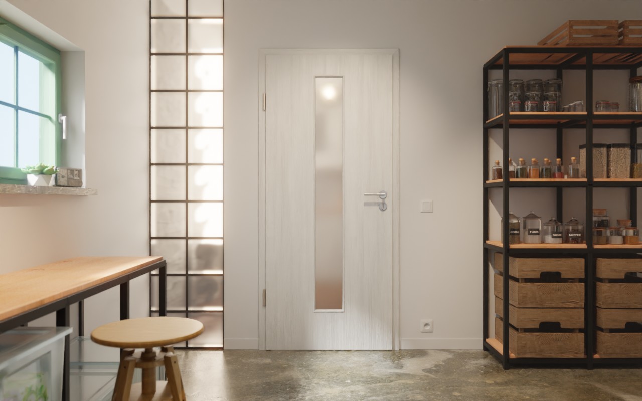 Nowoczesny akcent stanowi szeroki na prawie 20 cm szklany wstaw w środkowej części skrzydła drzwi. Wyrafinowany wygląd drzwi powstaje dzięki szaro-białemu melanżowi dekoru Authentic Grigio. Łatwy w pielęgnacji materiał CPL jest odporny na wilgoć i promieniowanie UV.