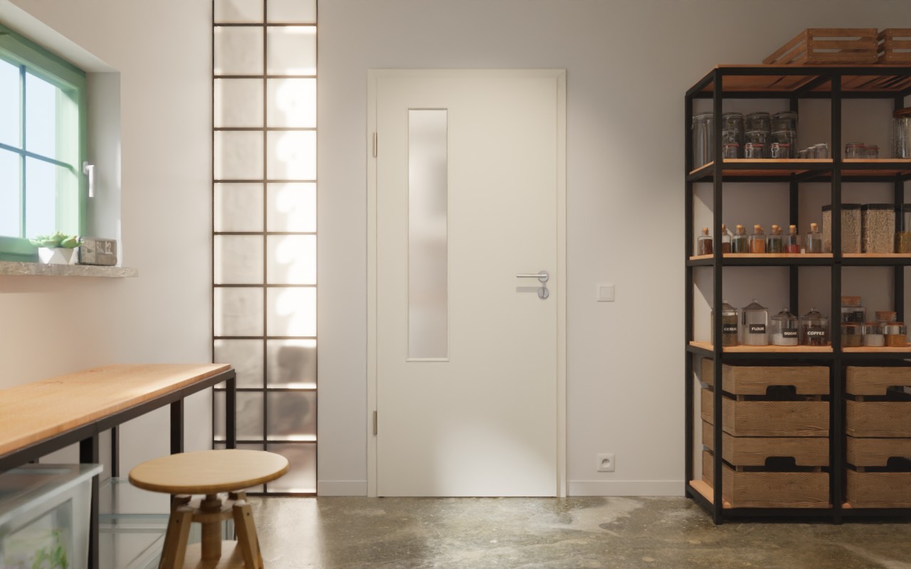 Po stronie zawiasów skrzydła drzwiowego otwór o szerokości nieco poniżej 20 cm zapewnia dyskretny dopływ światła. Jedwabiście matowy biały lakier w kolorze RAL 9010zapewnia przyjemny wygląd i miły dotyk. Lakier jest przyjazny dla środowiska i ma ponadczasowy wygląd.