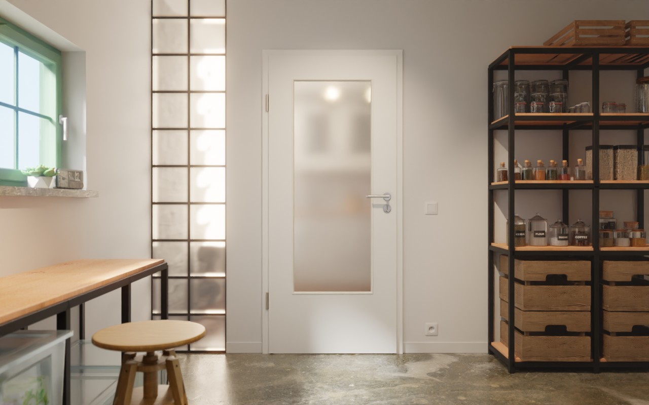Sercem tego modelu jest duży, prostokątny wycięty fragment szyby umieszczony pośrodku skrzydła drzwi. Delikatna struktura perłowa nadaje klasycznemu wzorowi w kolorze Designer White przyjemną fakturę. Ponadto powłoka HPL jest odporna na zarysowania.