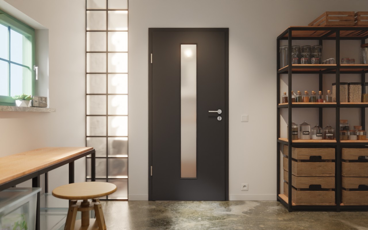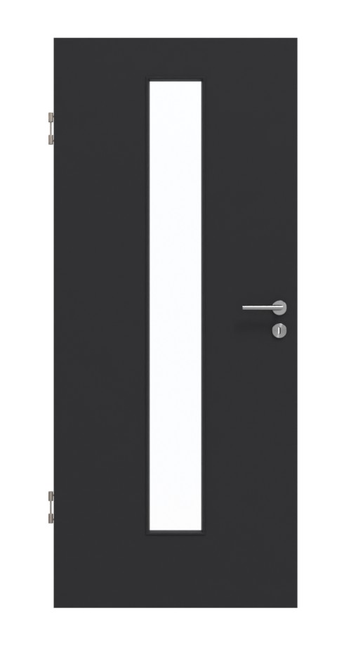 W środkowej części powierzchni drzwi znajduje się wąski otwór okienny . Na supermatowej powierzchni G-TEC w kolorze czarnym nieestetyczne odciski dłoni i palców nie mają szans.