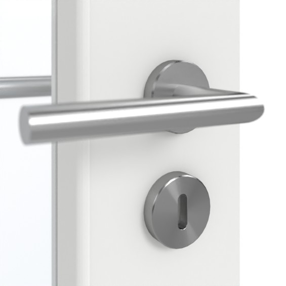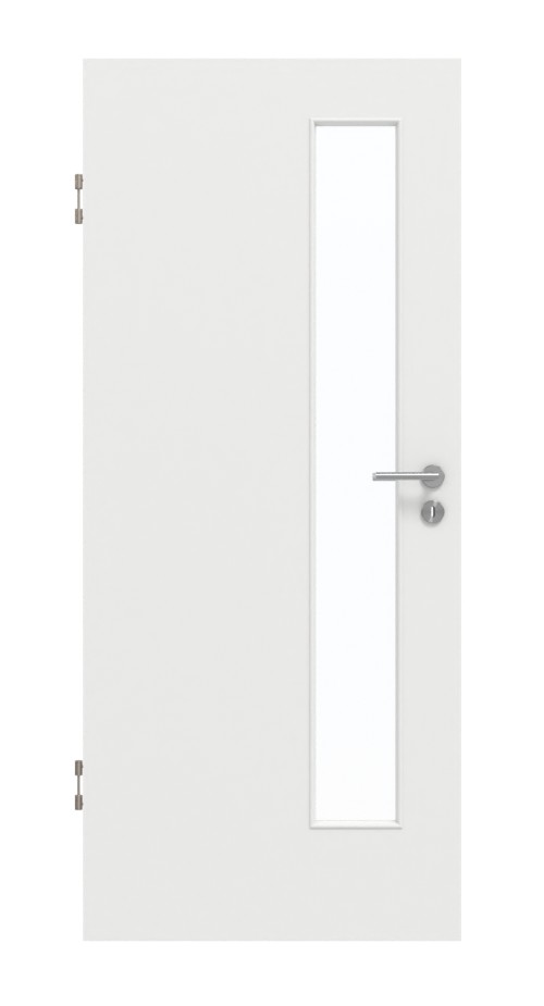 Po stronie zamka znajduje się długie, wąskie przeszklenie. Wysoce matowa powierzchnia G-TEC w odcieniu białego lakieru 9016 nie przyjmuje odcisków palców i przekonuje swoim nowoczesnym wyglądem.