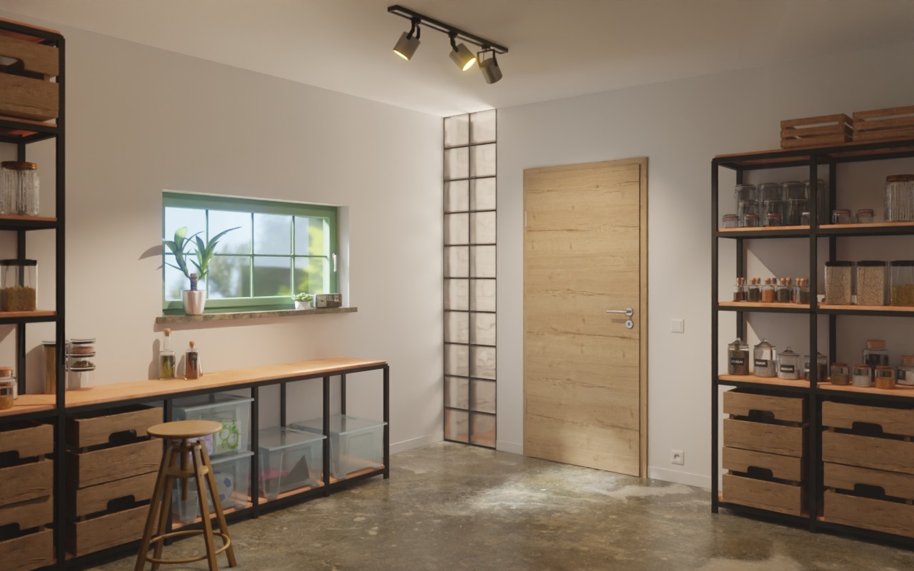 Solidne drzwi funkcjonalne z opadającą uszczelką podłogową: